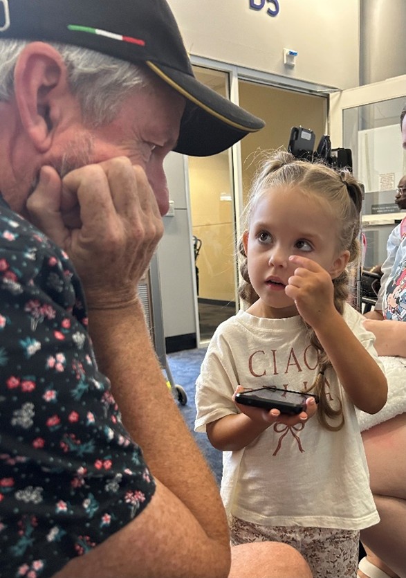 Later, after disembarking the plane and riding the tram across the airport, we heard Teagan’s mom call up to us. We had just stepped onto the escalator to ride up to the parking level, and they were passing by on their way to the elevator.