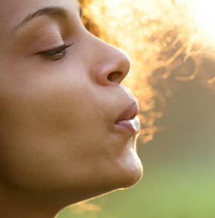 As we passed them, I glanced over for a last peek. He held his hand in front of her face, and she leaned slightly forward, mouth pursed as if she were blowing the seeds off a dandelion. Realization struck.